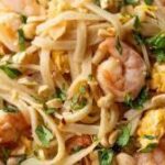 Riisnuudlid, krevetid, köögiviljad, muna ja pähklitega / Rice noodles with, shrimps, vegetables, eggs and peanuts